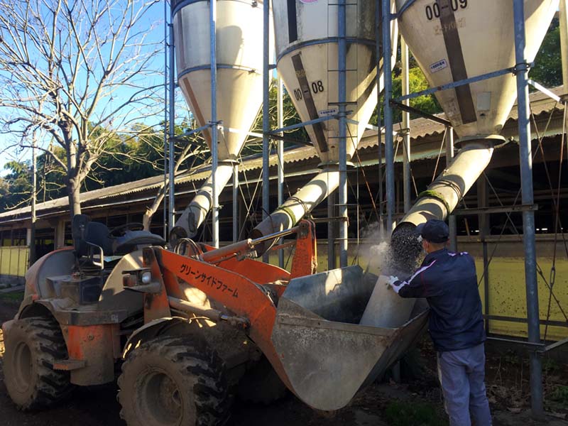 飼料儲藏塔里取出混合飼料
