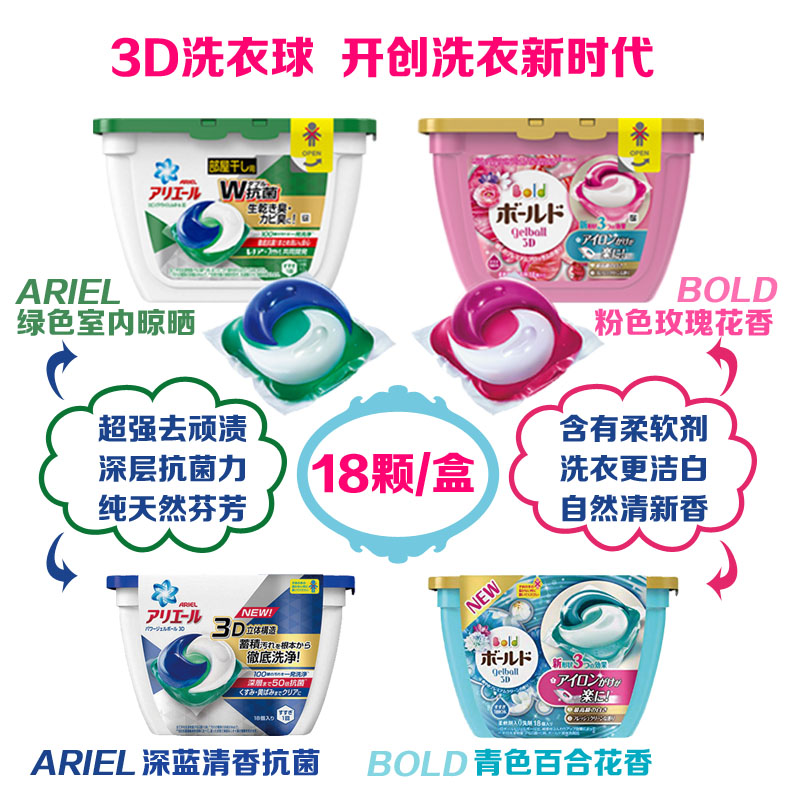 ARIEL 3D洗衣球/綠色室內(nèi)晾曬抗菌/深藍(lán)色強(qiáng)力去污
